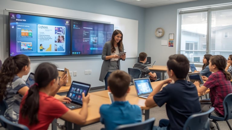 Facilita a interação digital e o acompanhamento das atividades escolares.